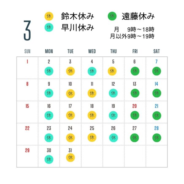 2026年3月スタッフ休務日について