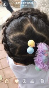 自慢できるほどの腕前ではありませんが、娘の髪の毛でアレンジした一部です。