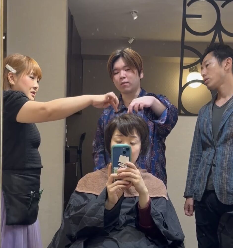 アシスタント遠藤君はスタイリスト昇進試験を控え、最終追い込みで日々の練習をしっかり続けています。