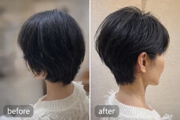 骨格を見ながら後頭部の位置と重さを調整して、乾かすだけで様になる大人ショート。